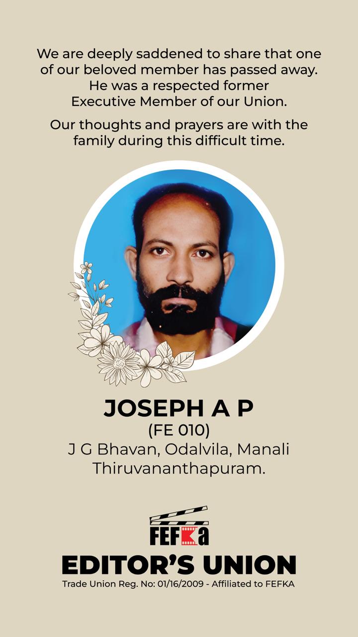 നമ്മുടെ സഹപ്രവർത്തകനും എല്ലാവർക്കും പ്രിയപ്പെട്ട ജോസഫ് ഏട്ടൻ ( FE 010 ) നമ്മളെ വിട്ടുപിരിഞ്ഞിരിക്കുന്നതായി അത്യന്തം ദുഃഖത്തോടെ അറിയിക്കുന്നു.